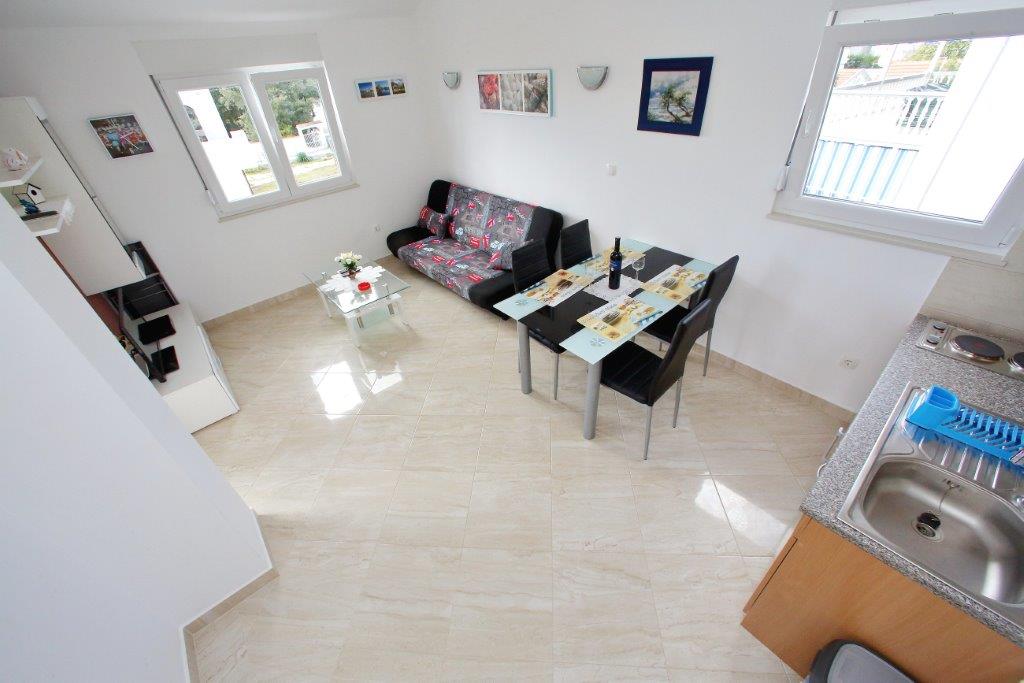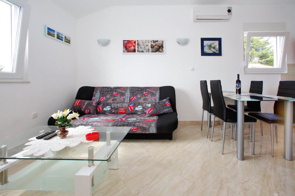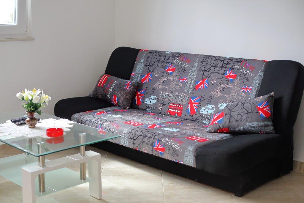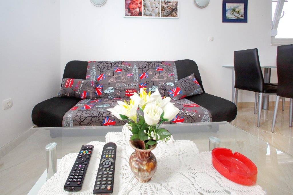 This apartment is located on the first floor of the house. It consists of 1 bedroom, kitchen, living room with sofa bed, and a bathroom with shower. There is also a balcony with a sea view. The pull-out sofa can accommodate extra guests. The yard is spacious and includes a barbecue for delicious meals. Free parking and Wi-Fi are provided. It is just a short walking distance from the beach, making it an ideal choice for your seaside vacation.